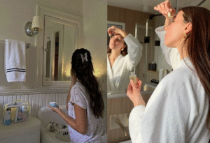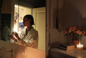 Pós-banho: Ao sair, seque-se lentamente. Envolva-se numa toalha macia, vista um pijama confortável, e evite correria. Deixe a pele “respirar” um pouco antes de fazer skincare ou deitar.