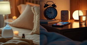 Certa vez eu estava em uma daquelas noites sem fim: nada tirava a confusão da minha cabeça, nem um chá de camomila, nem rezar. Minha mente corria a mil sobre problemas de trabalho e coisas que eu precisava resolver. Em vez de ligar o celular e entrar numa montanha-russa de pensamentos, levantei devagar e coloquei algumas gotas de óleo essencial de lavanda no difusor. Enquanto o aroma preenchia o quarto, fiz alguns alongamentos para relaxar o corpo. Aos poucos senti as preocupações suavizar. Depois, peguei um livro de crônicas engraçadas que estava no meu criado-mudo. Em poucos parágrafos eu já estava sorrindo, e as histórias me faziam esquecer do estresse. Acabei dormindo tranquila em poucos minutos, finalmente descansando como uma criança. Foi a primeira vez em semanas que a insônia deu trégua graças a algo tão simples.