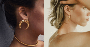 Começando pelos clássicos: argolas e brincos pequenos de bolinha ou pérola. Toda mulher deveria ter pelo menos um par desses. Por quê? Porque são versáteis ao extremo. Uma argola dourada ou prateada média fica ótima com uma trança no cabelo ou solto – ela instantaneamente traz um ar despojado e confiante. Brincos pequenos de pérola, por exemplo, deixam qualquer look mais delicado e elegante, sem errar o tom.