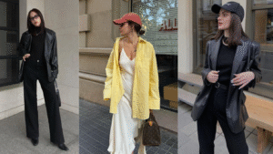 Coringas com um toque: Nos dias de preguiça, você pode “colorir” até um look total preto. É só escolher um acessório poderoso: um cachecol laranja, um colar verde-água, um sapato vermelho. Eu já fiz isso várias vezes: um jeans preto + gola rolê preta, e finalizo com uma bolsa pink ou um tênis neon. O contraste discreto garante o up de humor sem esforço.