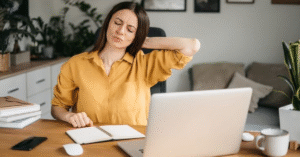 Alongue e massageie seus ombros: Pare o que estiver fazendo por um instante. Sinta cada músculo relaxar enquanto abaixa os ombros e use a palma da mão oposta para fazer movimentos circulares suaves na parte de cima de cada ombro e na nuca. Faça isso por cerca de 30 segundos em cada lado. Esse simples gesto ajuda a liberar toda a tensão de quem passa horas sentada ou em pé, e logo você vai notar que as cervicales ficam mais soltas e você respira melhor.