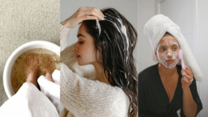 Um spa não está completo sem uns mimos no rosto e no cabelo, né? Enquanto você cuida do corpo, não deixe de estender esse carinho. Máscara facial: por exemplo, misture uma colher de mel puro com um pouco de aveia em flocos. Aplique no rosto limpo, evitando os olhos, e deixe agir por 5-10 minutos. Depois enxágue com água morna. Sua pele vai ficar macia e iluminada! Outra opção é argila branca com água mineral, ou iogurte natural com algumas gotinhas de mel – ingredientes calmantes que renovam a pele. O importante é proteger bem os olhos e curtir esse mini tempo de spa no rosto.