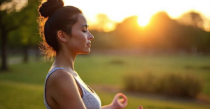 No outro dia de manhã, acordei exausta, com o peito palpitando de nervosismo. Decidi fazer algo diferente: sentei na cama, cruzei as pernas, fechei os olhos e respirei devagar por alguns minutos. Concentrei-me na respiração: inspirei contando até três, expirei contando até três, repetindo isso enquanto a ansiedade diminuía. Aos poucos, aquela tensão enorme foi se dissolvendo como açúcar na água. Meu corpo relaxou e minha mente clareou.
