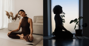 1. Respiração 4-7-8: Sente-se confortavelmente ou deite de costas com os olhos fechados. Inspire profundamente pelo nariz contando mentalmente até 4, segure a respiração por 7 e expire lentamente contando até 8. Repita esse ciclo 4 vezes. Essa técnica simples tem um efeito quase imediato de desligar a ansiedade. Eu faço no final de cada treino de yoga para “dar o tapa” final no meu sistema nervoso. Depois de alguns ciclos, minha mente já está muito mais calma, como se tivesse apertado um botão de desligar.