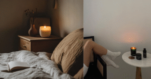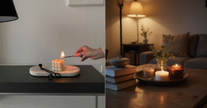 Falando em caseiro, que tal mexer nas panelas para fazer seus próprios cheiros? Hoje em dia é bem fácil encontrar kits para fazer velas em casa. Você derrete a cera de soja (que é mais natural) e mistura óleos essenciais. Um aroma que fica sempre charmoso é lavanda com um toque de limão – combina bem com vários ambientes. Se não quiser fazer, procure velas 100% naturais, sem parafina nem perfume artificial: elas queimam melhor e têm cheiro mais suave. Na minha experiência, acender uma vela delicada enquanto escrevo ou leio faz o ambiente ficar instantaneamente acolhedor. À noite, tomo um chá e coloco a vela no quarto: a luz branda e o cheirinho deixam tudo mais romântico e calmo, perfeito pra relaxar.