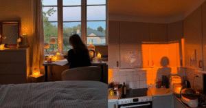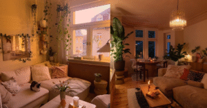Lembra do meu apê cinza? Eu sentia até um arrepio quando voltava do trabalho e via aquelas paredes sem cor. Até que um dia minha amiga Alice veio me visitar e não resistiu: “Amiga, parece casa de cemitério!” Kkkk. Foi engraçado, mas ela tinha razão. Eu, Ada, nem critico quem curte minimalismo – adoro meu guarda-roupa de peças básicas! Só que em casa aquilo não funcionava. A cada dia eu ficava mais determinada a levar cor pra lá. Decidi começar pelo que eu tinha: troquei a lâmpada fria por uma luz amarelada, e parecia até que o sol entrava pela sala todo dia. A casa ficou imediatamente mais aconchegante. Isso me deu vontade de continuar.