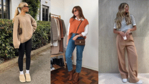 Uma paleta de cores neutras facilita demais a combinação de peças. Preto, branco, bege, cinza e tons de marrom ou azul-marinho funcionam como coringas: seja um top, uma calça ou um blazer, eles encaixam com quase tudo. Eu, pessoalmente, adoro marrom terroso e bege, mas você pode incluir também seu “toque de cor” favorito. Por exemplo, um azul suave ou um verde-oliva podem aparecer em uma blusa ou lenço, sem competir com o restante do visual.