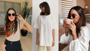 Camisetas e blusas básicas – branco, preto, cinza ou bege. Escolha modelos de boa qualidade e corte confortável. Uma camiseta branca pode ficar linda com jeans ou sob um blazer, e uma blusa polo feminina (gola polo) é ótima para dar um charme a mais sem esforço.