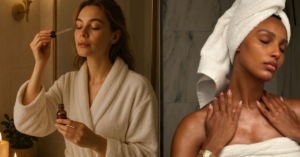 Quando você se sente segura, o seu sistema nervoso parassimpático assume o controle. É nesse estado que o sangue flui melhor para a superfície da pele, entregando nutrientes e oxigênio. É o que eu chamo de skincare do silêncio: o segredo gratuito para uma pele radiante. Sem o aroma da segurança, o seu corpo continua gastando energia em “modo de defesa”.