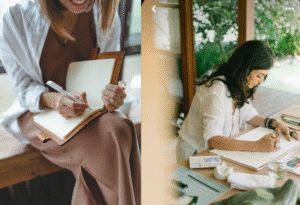 Talvez você já tenha sentido aquela “náusea” de pensar em tudo junto: trabalho, família, projetos pessoais, lado afetivo… Anotar no diário quebra esse nó. Primeiro, porque escrever organiza os pensamentos. Segundo, cada vez que colocamos palavras no papel, damos uma ajudinha ao cérebro para desafogar o que estamos sentindo. Estudos mostram que escrever sobre nossos pensamentos ajuda a reduzir o estresse e a ansiedade – é como se cada palavra aliviasse um pouquinho da carga mental do dia a dia.