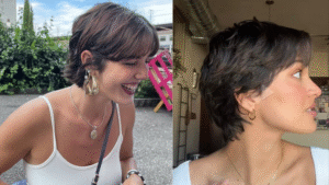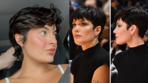 Quer fugir do comum? O pixie sempre aparece entre as tendências de cabelo, mas em 2025 ele ganha uma cara nova. Eu adoro esse estilo porque é curtinho e cheio de personalidade. Revela bem o rosto e faz com que você não passe despercebida. Com um pixie, até um simples topete ou franjinha desfiada transforma todo o visual!