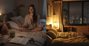 Exemplo da minha vida real: Toda noite, antes de dormir, guardo o celular longe e sento um pouquinho em silêncio. Houve um período em que eu mal dormia, pensando em tudo que não tinha dado certo no dia. Então, numa dessas noites, decidi sentar-me à beira da cama. Sentei-me na escuridão suave do quarto, com a luz tênue de um abajur derramando um brilho amarelado pelas paredes, sombras dançando lentamente. O silêncio era quase total, interrompido apenas pelo som distante de carros na rua. Fechei os olhos e respirei fundo devagar. No começo, minha cabeça explodiu em preocupações e lembranças ruins, mas aos poucos veio uma calma estranha. Senti meu corpo relaxar e meu peito se soltar de um peso. Quando abri os olhos, um leve sorriso apareceu no meu rosto, e percebi o quanto aquele momento de silêncio era precioso. De lá para cá, o ritual de desligar o mundo por alguns minutos todas as noites ficou ainda mais sagrado. Notei que, nas manhãs seguintes, eu acordava muito mais tranquila e pronta para o dia. A paz que encontrei nesse silêncio me mostrou que carregar tanta tensão não era necessário.