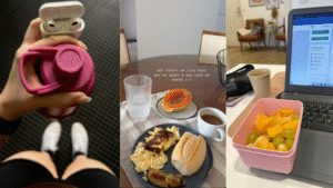 Depois que eu defini meus hábitos, criei uma rotina diária bem simples para seguir durante 3 meses. Não havia nada de extraordinário – era apenas organizar o dia para dar espaço a essas pequenas ações. Aqui está um exemplo de como faço cada dia funcionar a meu favor: