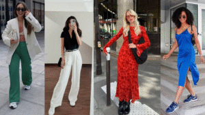 Athleisure Chique: Misture conforto e estilo casual. Por exemplo, calça jogger preta + camiseta de malha neutra + blazer largo. Finalize com um tênis descolado ou bota de salto baixo. Esse mix “despojado + chique” mostra que você domina o conforto com atitude, ideal para passeios descontraídos ou para um home office estiloso.
