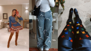 Estilos pessoais: Use o tema junino como inspiração, mas do seu jeitinho. Se você é romântica, abuse dos florais, babados delicados e cores suaves. Se é mais rocker, vale jogar uma jaqueta de couro fake sobre um vestido floral ou calça jeans destroyed com bota. Minimalista? Aposte em uma cor única (tom sobre tom) e escolha um item xadrez ou um acessório somente para dar o clima. Ama um boho? Camadas de tecidos leves, um colete de crochê, franjas e sandálias dão o ar “arrepiado” sem brigar com o arraial. Não importa o estilo, combine elementos juninos discretos (xadrez, renda, chita, lenços) com peças do seu dia a dia. Assim você será a mais autêntica e confiante da festa.