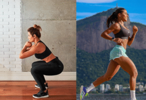 Burpees: combina agachamento, prancha e salto – é puxado, mas ótimo cardio. Se for muito intenso no começo, troque por polichinelos (jumping jacks), que também fazem um ótimo trabalho.