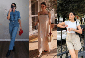 Antes de montar qualquer look, pense nos materiais e modelagens que te deixam fresca. Prefira tecidos naturais e fluidos como algodão, linho, viscose ou rayonne – eles permitem a pele “respirar” e sempre caem bem. Agora veja algumas peças essenciais que combinam conforto e estilo: