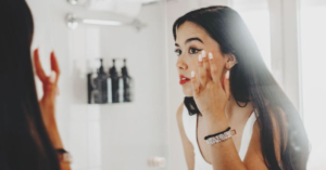 3. Procure o brilho: Em vez de olhar para a mancha, procure o brilho nos seus olhos. Procure a curva do seu sorriso. Procure algo que você genuinamente gosta em você — pode ser a cor da sua íris, o desenho da sua sobrancelha ou a suavidade da sua têmpora.