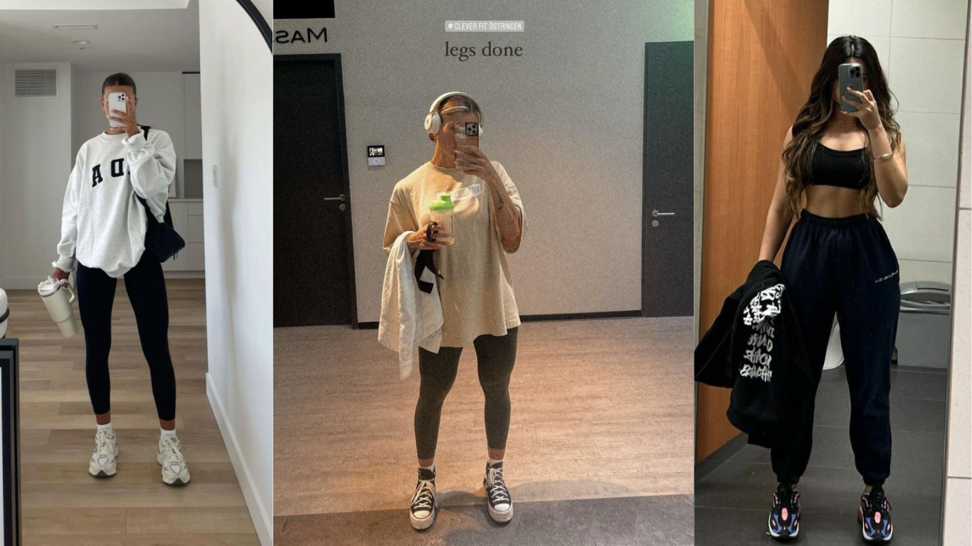 Note que em todas essas combinações as cores mantêm uma harmonia neutra, sem estampas muito chamativas. Isso dá a impressão de cuidado no visual mas sem parecer “montada demais”. A ideia é que você possa entrar na academia e conversar com quem quiser sem sentir que está participando de um concurso de moda.