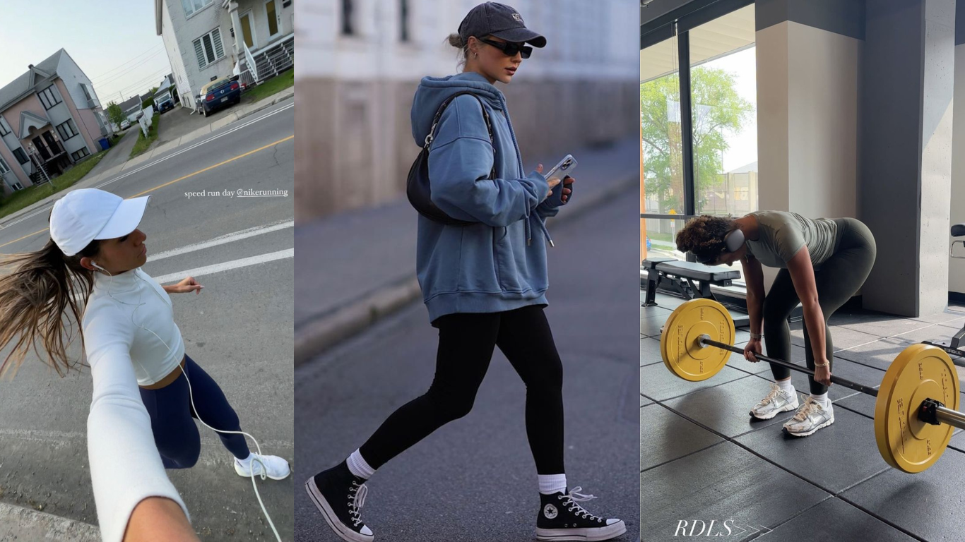 • Escolha o tênis certo: ele é parte essencial do look de treino. Prefira modelos leves, adequados ao seu tipo de atividade e com bom amortecimento. Tênis em cores neutras (branco, cinza ou preto) combinam com tudo e dão um ar clean ao visual.