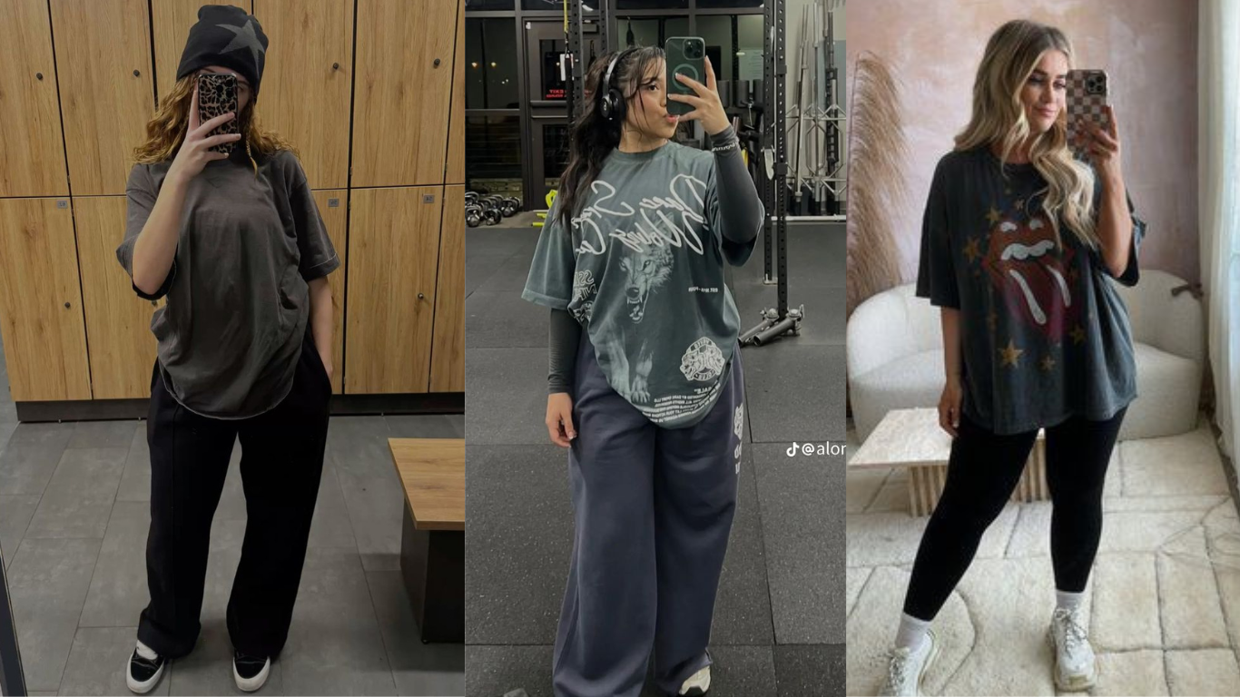 Agora, vamos falar das partes de cima. Ninguém merece começar um exercício sentindo a camiseta grudando no corpo ou subindo cada vez que mexemos os braços, não é? Por isso, camisetas largas e regatas amplas são fundamentais no seu guarda-roupa de treino. Essas peças dão aquele estilo relaxado e ao mesmo tempo são muito práticas.