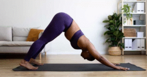 • Use a parede, se precisar: Apoie-se nas mãos ou nas costas em uma parede ou no batente da porta para ajudar no equilíbrio em alguns alongamentos. Isso é ótimo para quem está começando ou sente que não alcança tão bem.