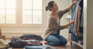 | Comprar roupas para “emagrecer” ou “disfarçar”. | Comprar roupas pelo conforto e pelo estilo pessoal. | Aplicar o método de curadoria do guarda-roupa. |