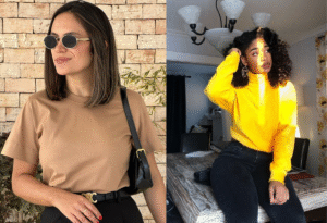 Combine alto e baixo de elegância: Misture uma peça mais arrumada com uma casual. Um truque que uso muito: visto uma calça ou saia de alfaiataria (que são vistas como elegantes) com uma camiseta simples ou um moletom descolado. O resultado é um look equilibrado, nem muito sério nem muito relax. Funciona tanto para um dia de trabalho em home office quanto para um almoço casual com amigos.