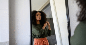 Brinque com seu estilo: Pegue peças do seu guarda-roupa que você nunca usou e experimente combinações coloridas. Uma saia estampada com uma blusa vibrante, uma echarpe colorida ou um batom diferente: veja o que te faz sentir feliz. Quando nos vestimos para nos sentir bem, cada look vira um lembrete de que somos únicas.
