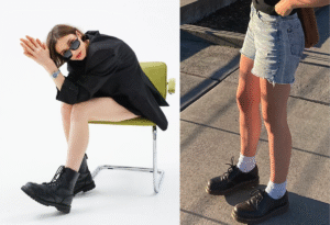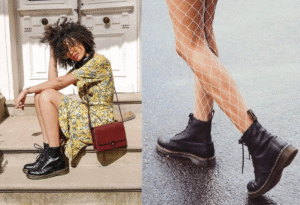 Por exemplo, quando uso o coturno com jeans skinny ou legging, ele cria um visual prático e urbano. Em dias que quero conforto absoluto, fico só na parte de baixo mais ajustada e jogo algo soltinho na parte de cima – um suéter longo, um moletom oversized ou uma camisa de flanela xadrez. Fica super cool e ninguém precisa saber que estou me sentindo nas nuvens de conforto. Agora, se a ideia é dar um ar mais feminino ao visual, compro um vestido ou saia levinha e equilibro com o peso do coturno. Essa mistura de peças delicadas com um coturno dá aquele contraste poderoso: o romantismo das flores encontra atitude de rocker, e dá certo! Como diz o mesmo artigo, usado com saias e vestidos o coturno “equilibra o romantismo das peças com contraste e peso”.