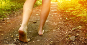 Descalce os pés: Se possível, toque a grama ou terra. Se não, apenas sinta o chão.