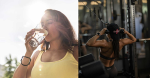 Hidrate o corpo pela manhã: Comece o dia bebendo um copo grande de água em jejum. Eu costumo colocar limão ali, o que ajuda a limpar. Além de acordar o corpo, ajuda o suplemento a chegar mais rápido nas células, dando uma acordada de leve no metabolismo.