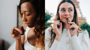 Misturas caseiras: adoro adicionar uma gota em cremes ou máscaras faciais. Uma receita que uso é misturar óleo de olíbano com óleo de rosa mosqueta para um sérum caseiro anti-idade cheio de carinho para minha pele.
