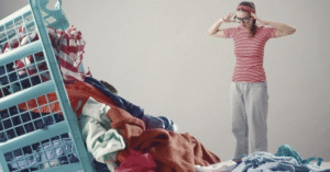 • Pule para trás da pilha: Separe imediatamente as roupas limpas das sujas. As limpas voltam para o armário ou cômoda. As sujas vão para o cesto de roupa.