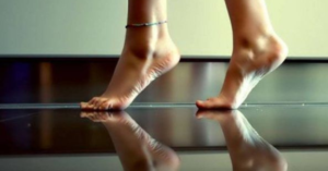 Feche os olhos por alguns segundos (ou mantenha-os abertos, se preferir) e respire devagar. Sinta o pé tocando o chão: a textura, a temperatura, a leve pressão.