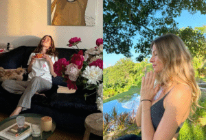 Dica prática: se você tem dificuldade em ficar parada, uma dica é ouvir sua música favorita enquanto realiza um autocuidado – pode ser enquanto faz uma máscara facial, penteia os cabelos ou toma aquele café gostoso. A música ajuda a entrar no clima.