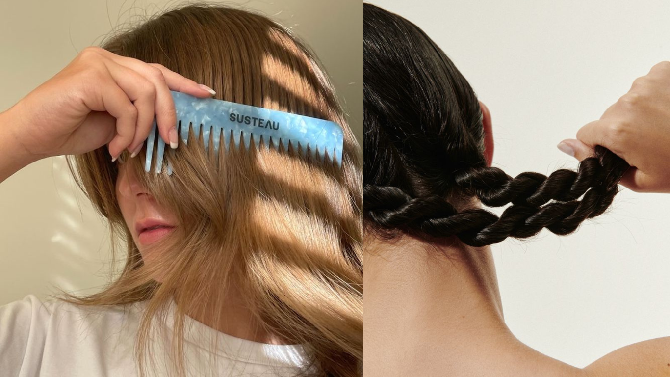 Elásticos e prendedores gentis: Troque elásticos finos e duros por modelos de tecido ou espiral (de silicone). Varie o penteado: tranças, coques bagunçados e rabos de cavalo frouxos são gentis com as pontas. Evite prender o cabelo sempre no mesmo lugar – isso quebra a fibra. E na hora de dormir, um coque alto simples reduz o atrito com o travesseiro.