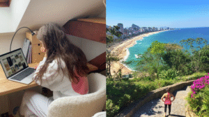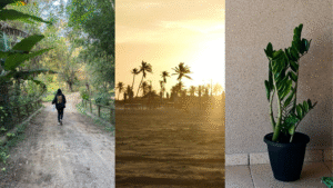 Por exemplo, uma coisa que costumo fazer é olhar para o horizonte no fim de tarde, quando o sol começa a descer. Ao ir para a praia e observar o pôr do sol da primavera, consigo pensar nos meus desafios com mais clareza. Os pensamentos acelerados dão lugar a uma sensação de paz, e consigo enxergar novas soluções ou simplesmente ser grata pelo caminho que já percorri. Essa prática simples de “parar e sentir” é algo que recomendo a você também. Se quiser, experimente fazer um diário rápido: escreva três coisas pelas quais você é grata naquele dia, ou cinco sonhos que gostaria de realizar neste ano.