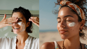 E não pense que só porque você vai estudar ou trabalhar dentro de casa está livre: raios UVA atravessam vidro, então o rosto ainda sofre com a luz solar. Por isso, reaplique o protetor a cada 2 horas se estiver ao ar livre, e se rolar suar ou ir à praia/piscina, use um filtro à prova d’água e reaplique após nadar ou enxugar.